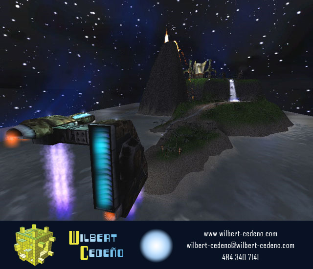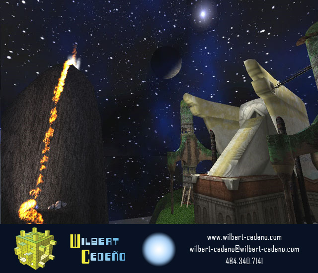 Wilbert Cedeño: Animation, sounds, physics, sky & particles (waterfall and other special effects). Modeled landscape and textured landscape. Modeled rocks and Tiki torches.